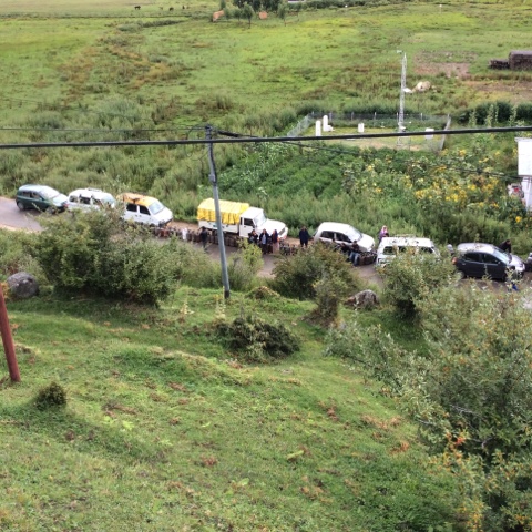 Leaving Tang, we were in a caravan, with 5 cars following us, some teachers, a couple of kids, wives and even the principal and his wife. They were seeing us off. We stopped a couplr of kilometres from the school in a clearing on a height of land. Rugs and foamies came out to sit on and we were served tea and biscuits. There were two types of suja and milk tea with ginger in it. Yum. It was a special way they say good bye. We were told it was a school tradition, but later heard it is white common to see special guests off in this way. Everyone (the Bhutanese) took lots of pictures and laughed a lot. It was actually quite touching.